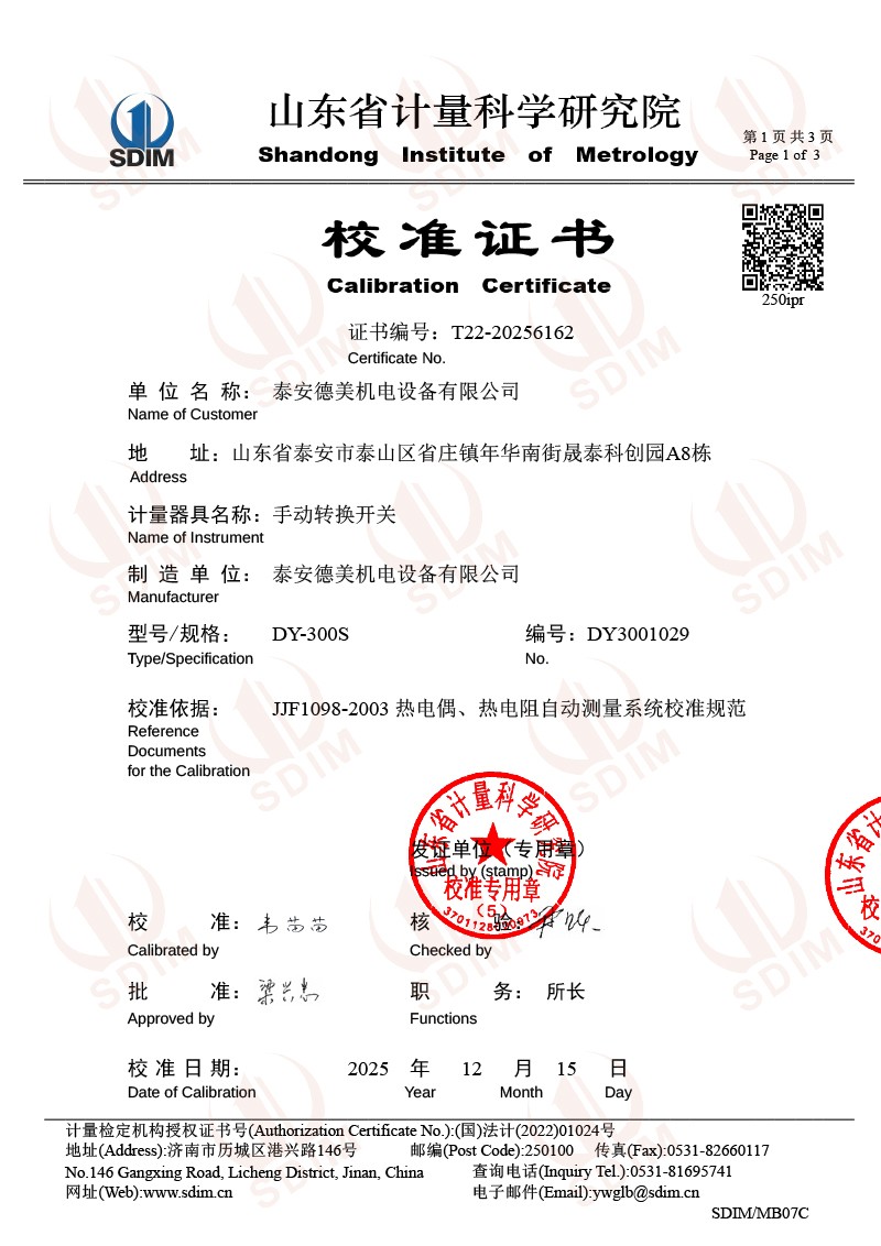 德美手動轉(zhuǎn)換開關(guān)校準證書 2025-12-18 本文被閱讀 88 次