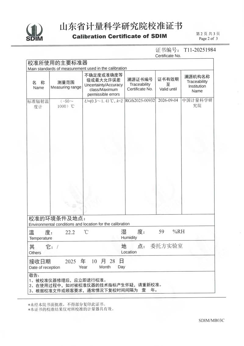 黑體輻射源(0-60°C)校準證書 2025-11-5 本文被閱讀 20 次