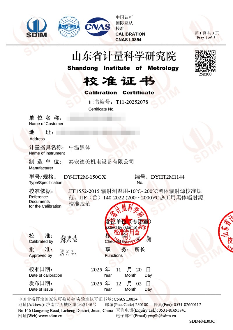 中溫黑體校準(zhǔn)證書 2025-12-4 本文被閱讀 532 次