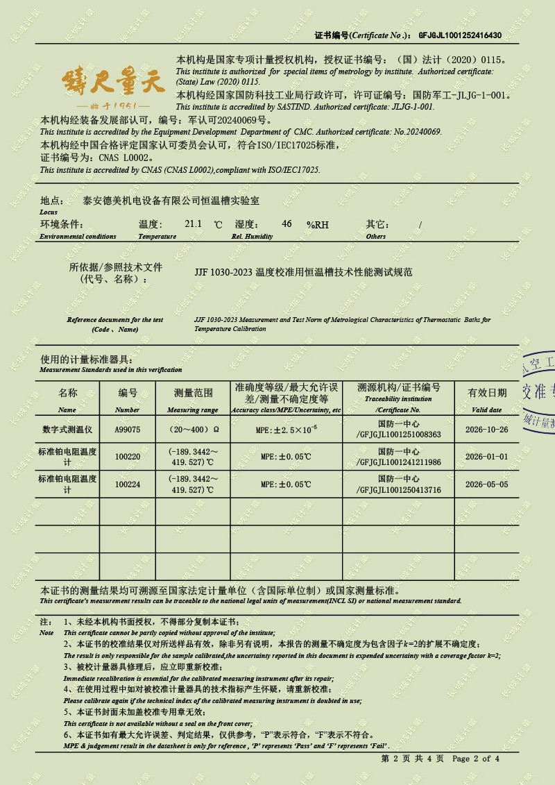 高精度制冷恒溫槽(0~100℃)-校準(zhǔn)證書(shū) 2025-12-19 本文被閱讀 216 次