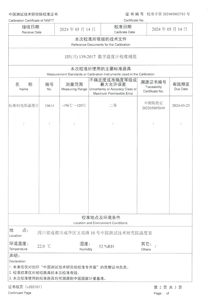 | 上一條:高精度數(shù)字溫度計(jì)校準(zhǔn)證書 | 下一條:冷鏡式露點(diǎn)儀校準(zhǔn)證書 |