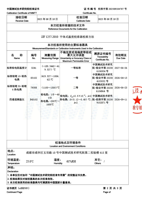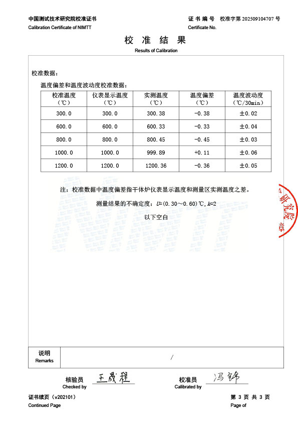 高溫干體爐(300-1200℃)校準證書 2025-9-22 本文被閱讀 1561 次