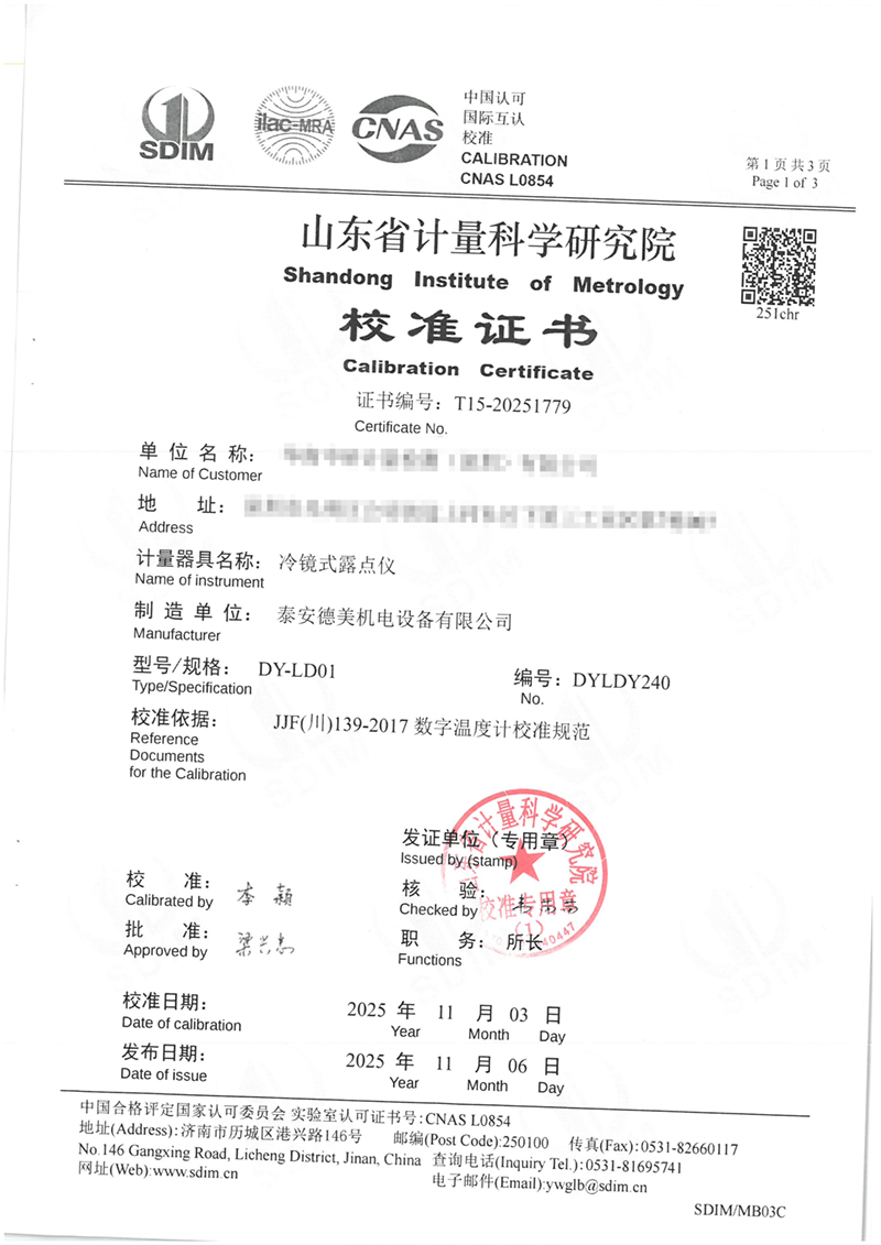 冷鏡式露點儀校準(zhǔn)證書 2025-11-7 本文被閱讀 27 次