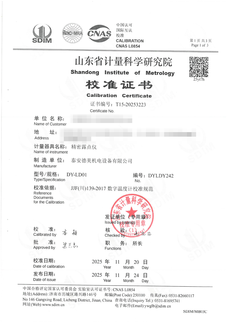 露點儀檢定、校準(zhǔn)證書 2025-12-4 本文被閱讀 859 次