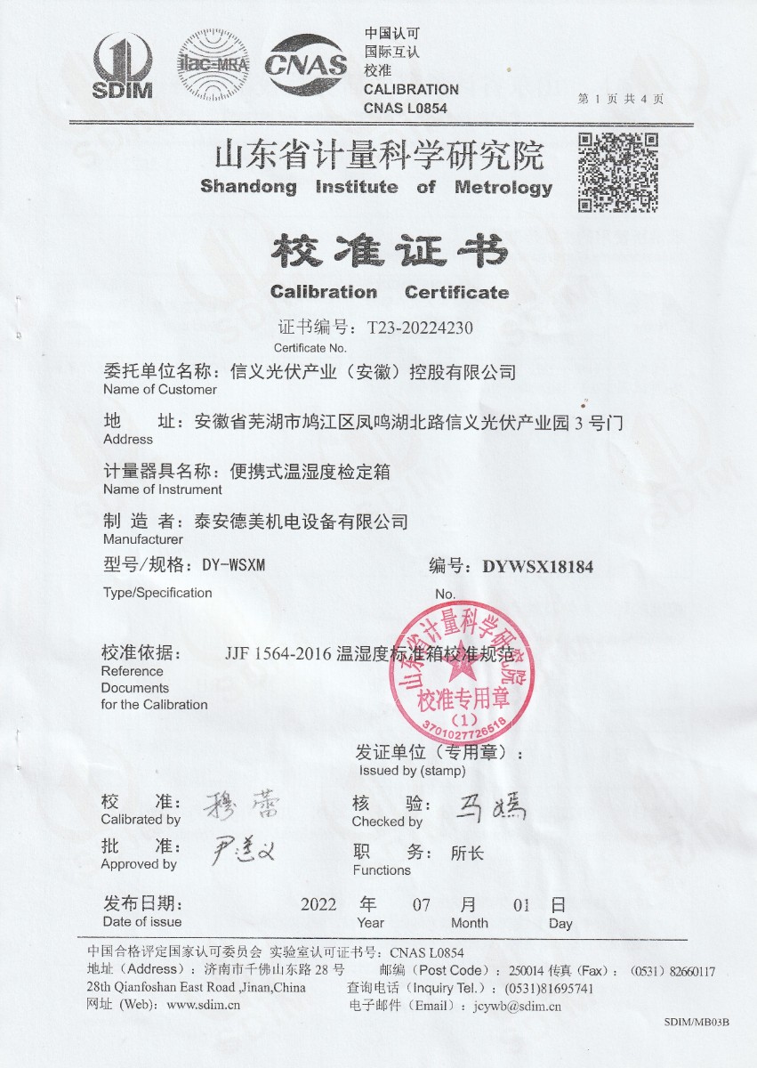 信義光伏產(chǎn)業(yè)(安徽)控股有限公司便攜式溫濕度檢定箱 2022-7-11 本文被閱讀 11352 次