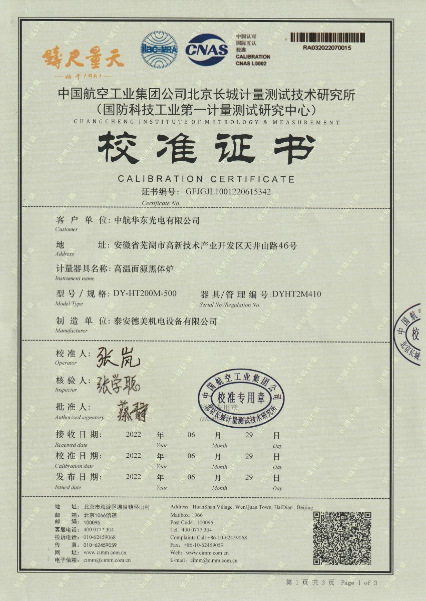 | 上一條:中國(guó)航空工業(yè)集團(tuán)公司沈陽(yáng)空氣動(dòng)力研究所-黑體輻射源 | 下一條:冷鏡式露點(diǎn)儀校準(zhǔn)證書(shū) |