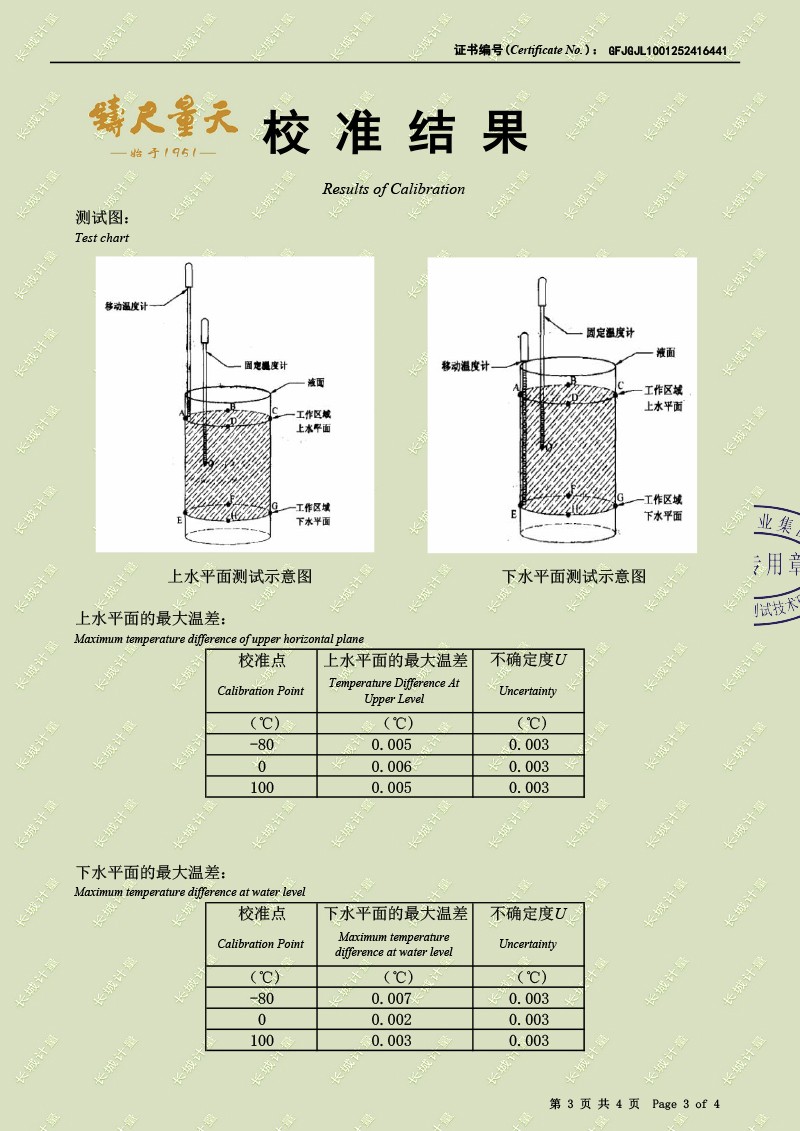 高精度制冷恒溫槽(-80~100℃)校準(zhǔn)證書(shū)