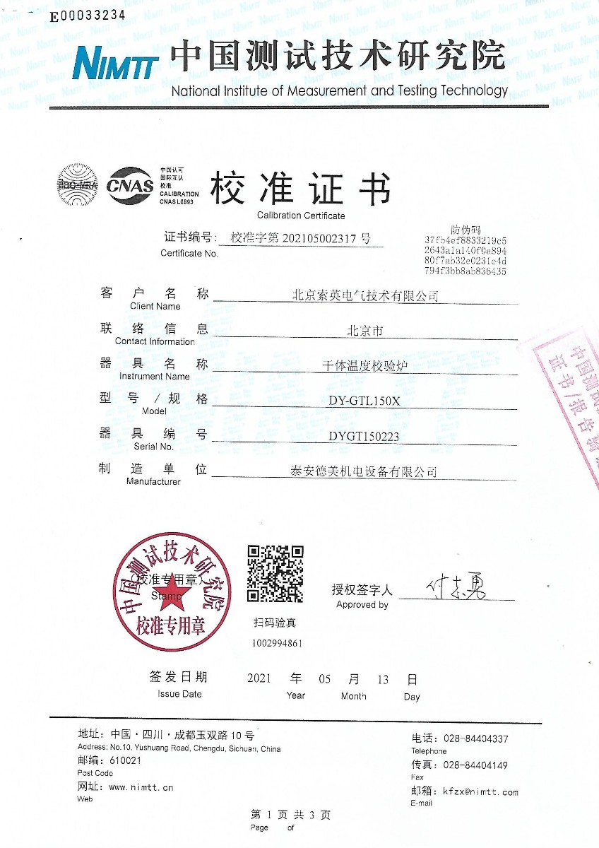 | 上一條:龍旗電子(惠州)有限公司便攜式溫濕度檢定箱 | 下一條:冷鏡式露點(diǎn)儀校準(zhǔn)證書 |
