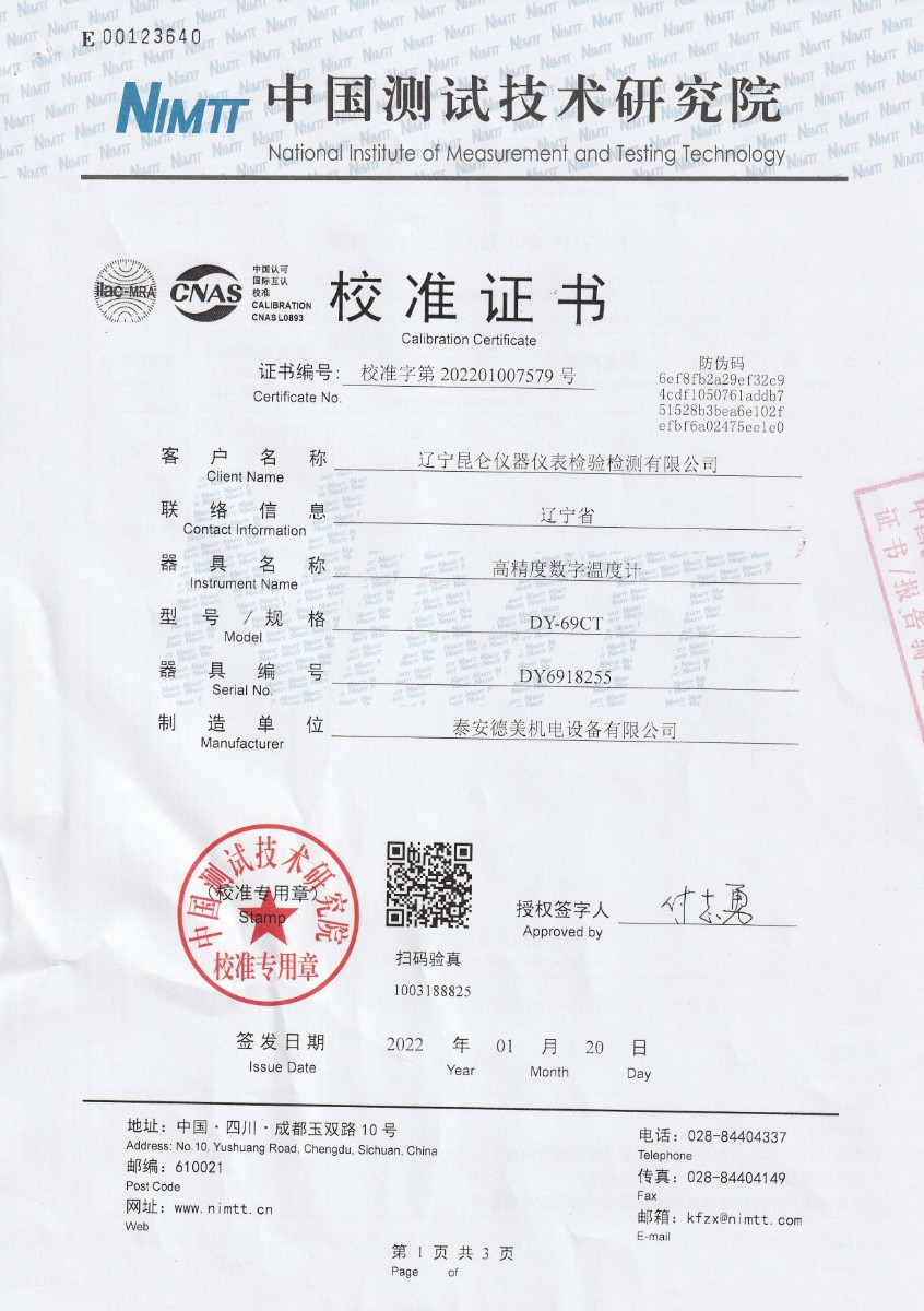 遼寧昆侖儀器儀表檢驗檢測有限公司-高精度數(shù)字溫度計 2022-2-15 本文被閱讀 13482 次