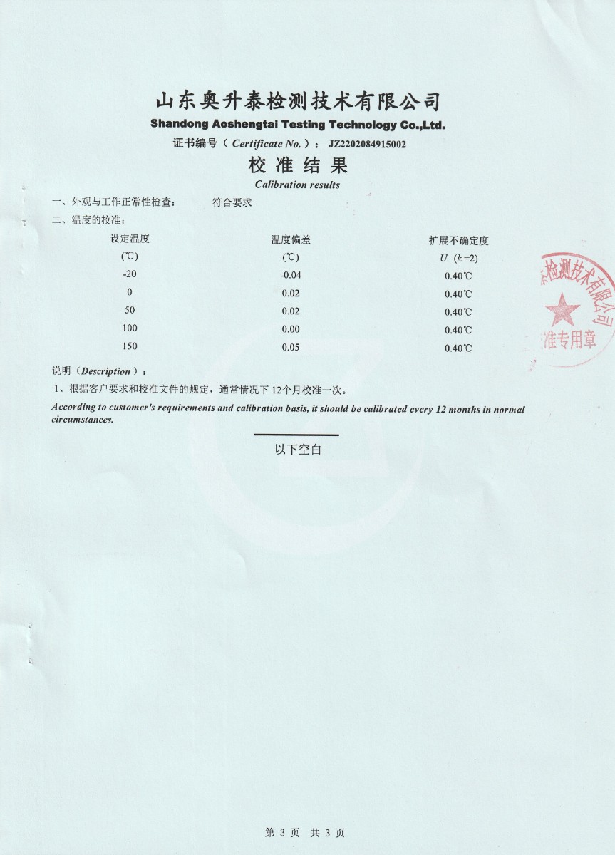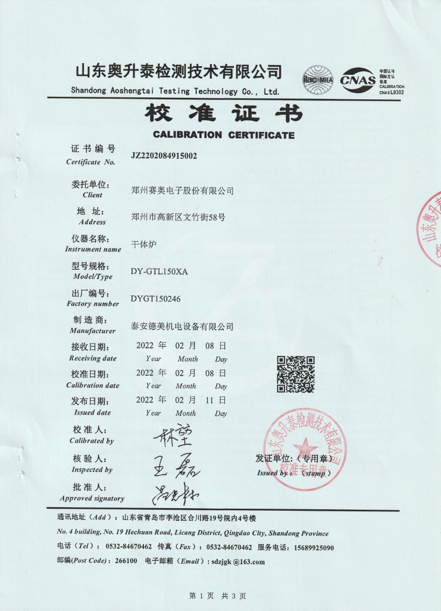 | 上一條:鄭州賽奧電子股份有限公司-干體爐DYGT150245 | 下一條:冷鏡式露點(diǎn)儀校準(zhǔn)證書 |